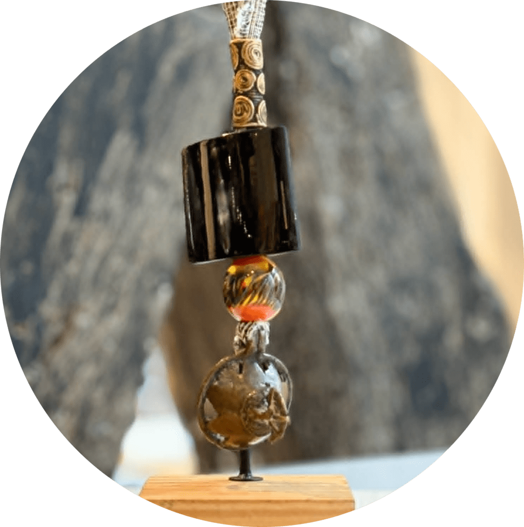 en mêlant la force des perles de bronze africaines à la lumière des perles de verre de Murano.